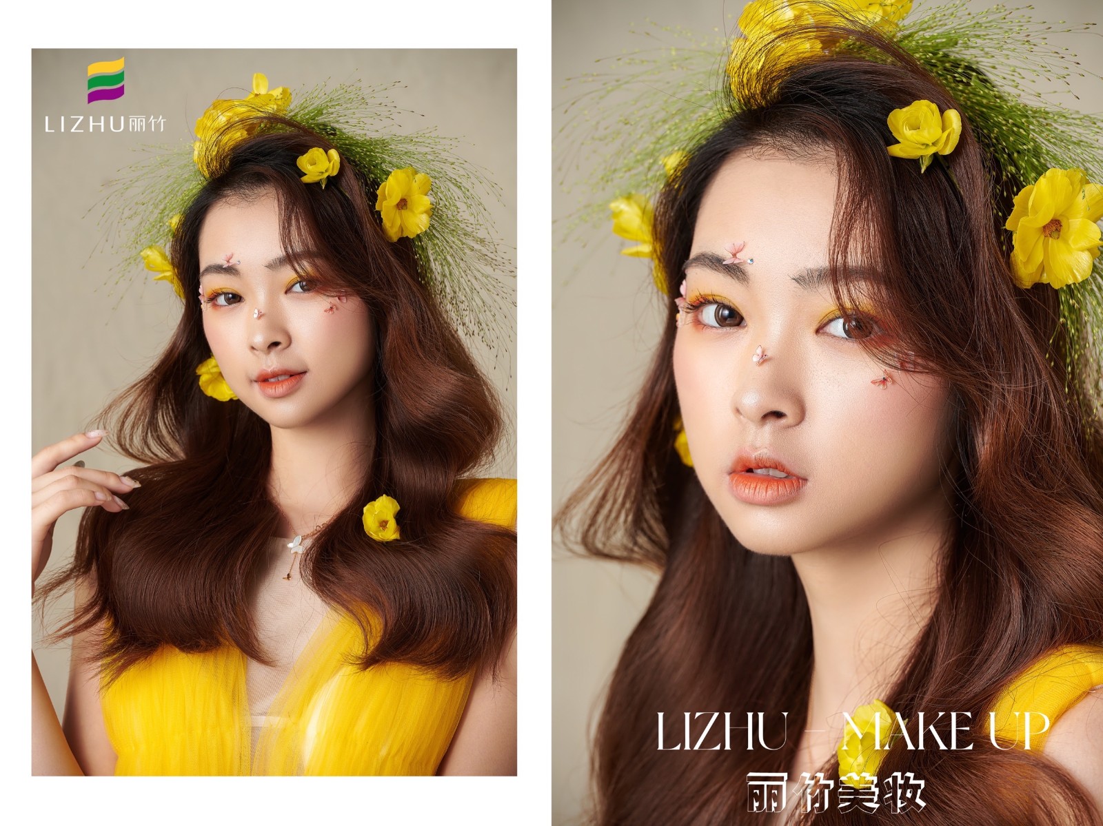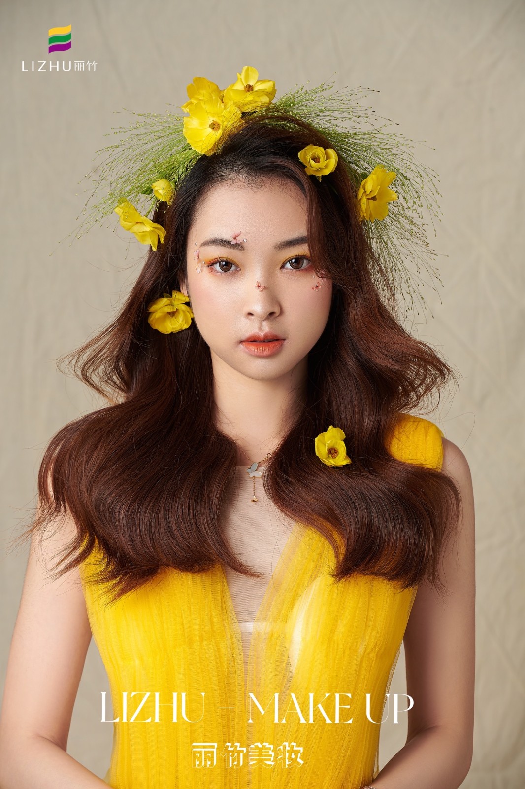 麗竹化妝學(xué)校作品---輕氧花漾披發(fā)造型:清新自然嫩膚柔細,發(fā)絲宛若三月春風(fēng),繁華似錦帶來神秘曼妙,清透靈動述說少女心事。