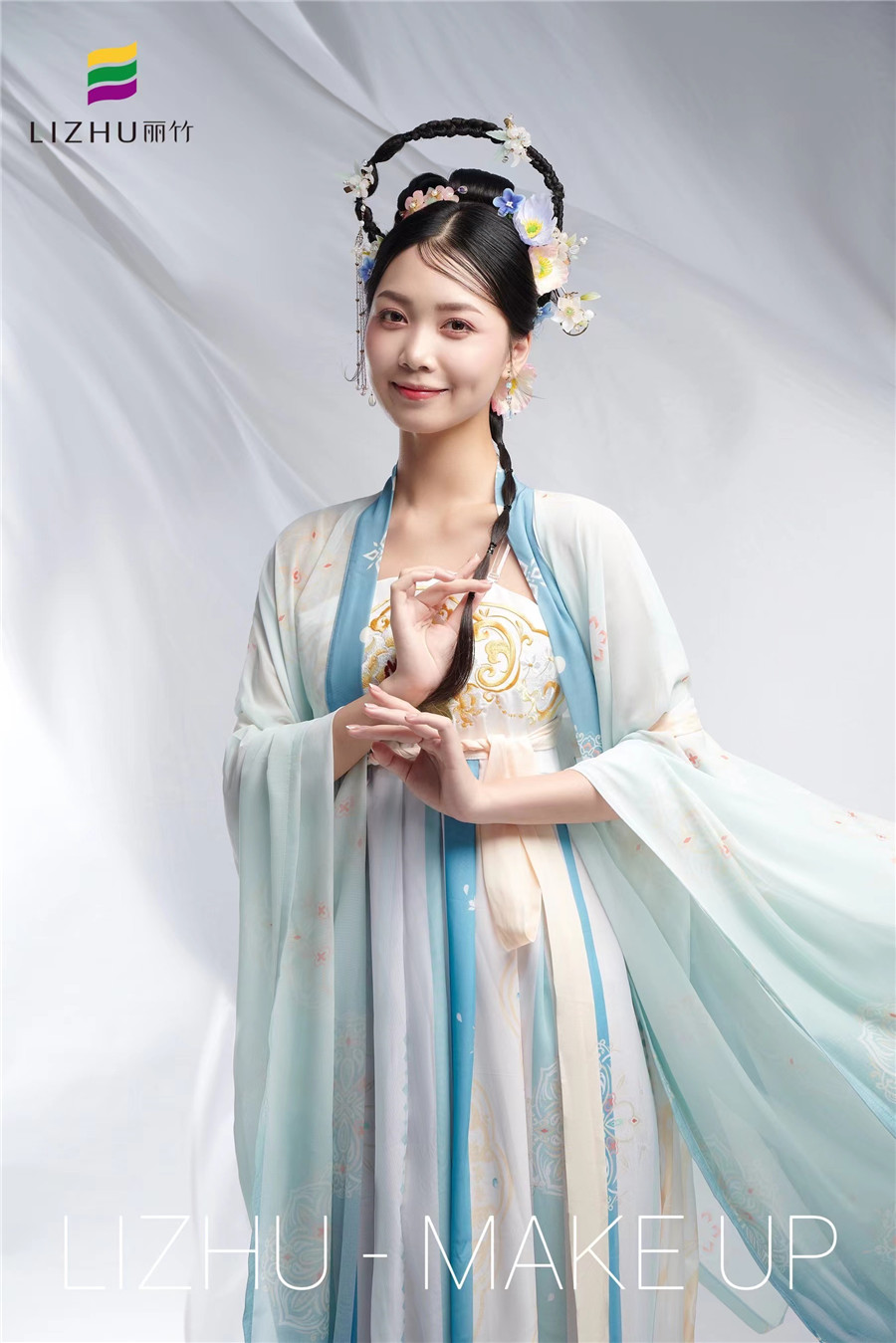 南寧彩妝化妝培訓班、南寧彩妝培訓機構作品---古代漢服造型:南方有佳人,絕世而獨立。素雅衣衫勾勒曼妙身姿,清新頭飾點綴溫婉氣質,嘴角淺笑皆是似水柔情。想知道南寧哪里可以學古裝?想知道南寧教彩妝哪家好?現在就趕緊關注麗竹學校吧。