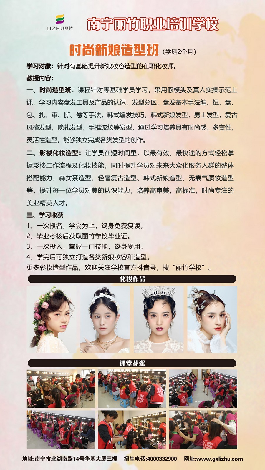 南寧麗竹化妝學校分享:努力不一定能帶來成功,但是一定能帶來成長。未來的你,一定會感謝現(xiàn)在拼命的自己!課程報名現(xiàn)已經(jīng)開啟,有了目標的你可以通過以下方式了解課程相關(guān)事宜。