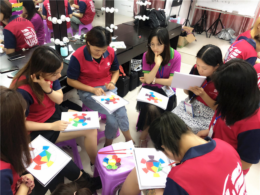 如果你認(rèn)為這只是簡(jiǎn)單在相應(yīng)的空格里上色,那就錯(cuò)了。學(xué)過(guò)彩妝,美甲,美發(fā)的人都知道,色彩分有冷色系和暖色系,在學(xué)習(xí)色彩搭配的時(shí)候,學(xué)員必須要對(duì)這兩類(lèi)色調(diào)的顏色分清,同時(shí)還要有能進(jìn)行冷暖色調(diào)進(jìn)行調(diào)配的能力。而同學(xué)們正在做的就是這個(gè)練習(xí)。
