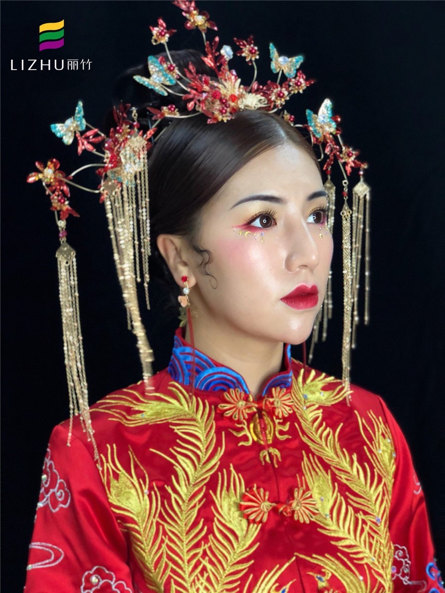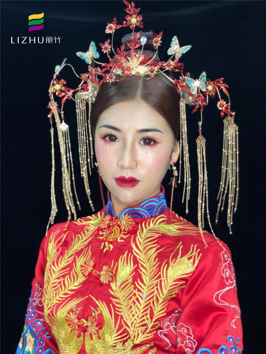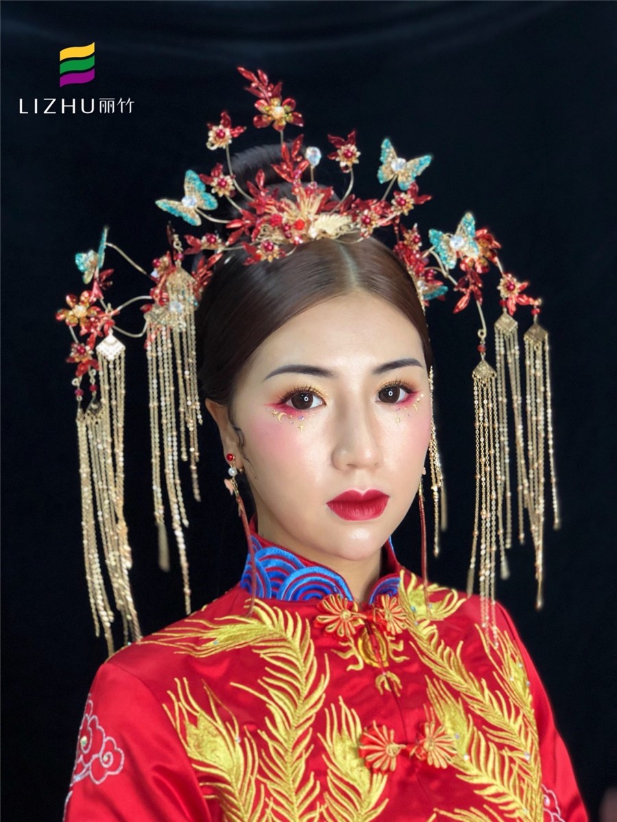 南寧化妝學(xué)校(麗竹化妝學(xué)校)課堂作品欣賞:精致的妝面,搭配華麗的冠冕,凸顯中式尊貴氣質(zhì)。緋紅的眼妝暈染,更顯優(yōu)雅溫柔,美艷絕倫。