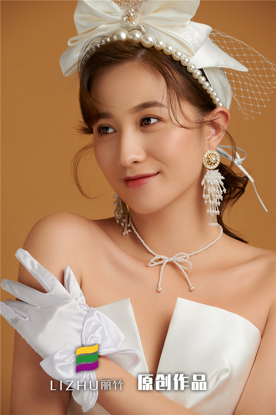 麗竹學(xué)校彩妝作品---簡(jiǎn)約韓式新娘造型:自然輕薄的妝面似有似無(wú),配上清新靈動(dòng)的簡(jiǎn)約盤發(fā),點(diǎn)綴潔白無(wú)暇的珍珠飾品,搭配白色綢緞面料的禮服,凸顯“人淡如菊”的氣質(zhì)。