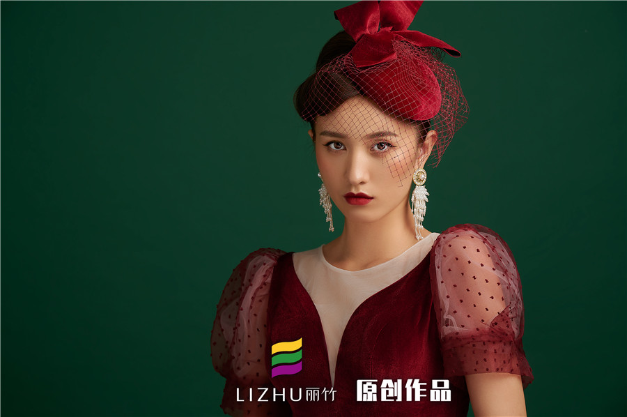 搭配紅紗蝴蝶結(jié)頭飾