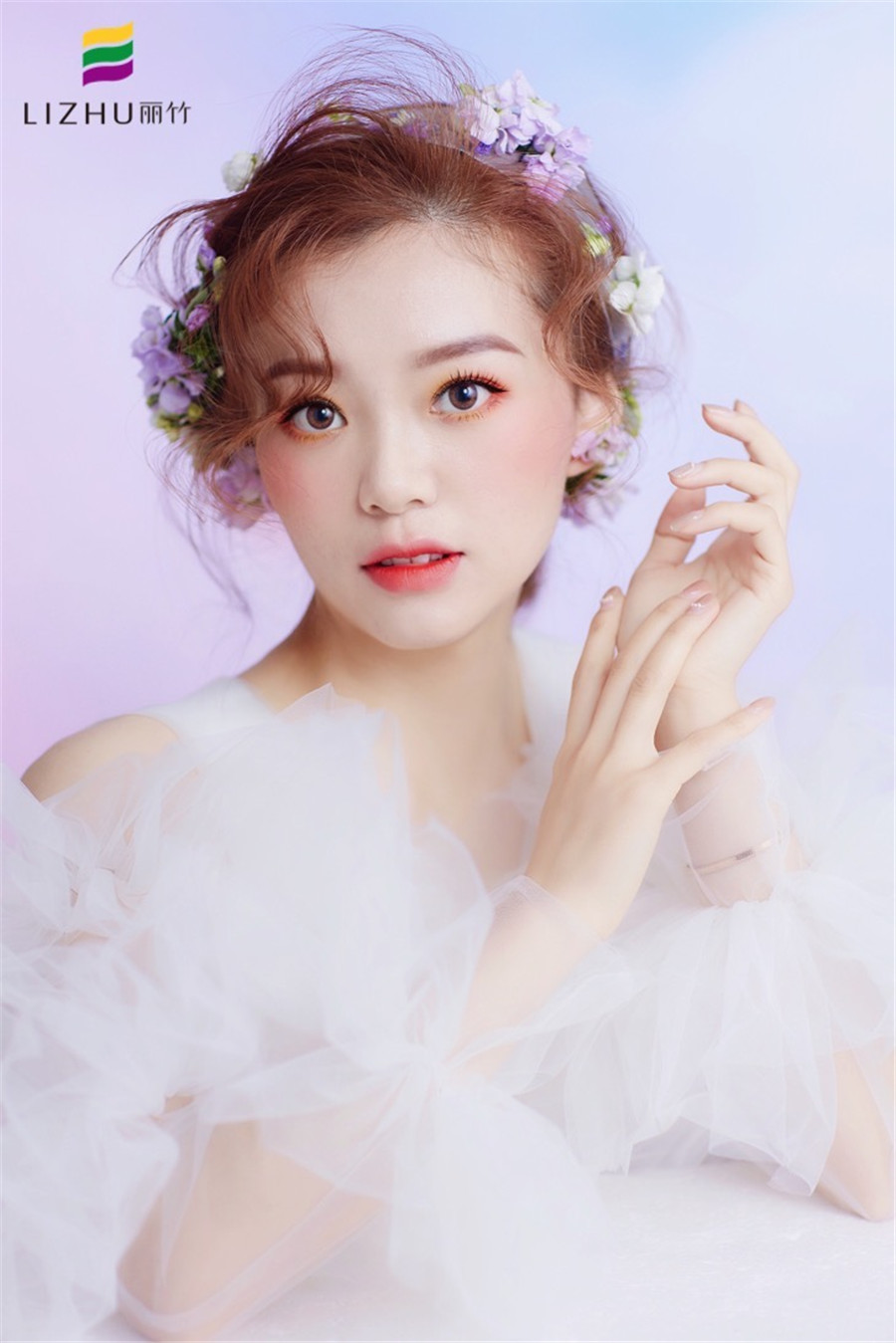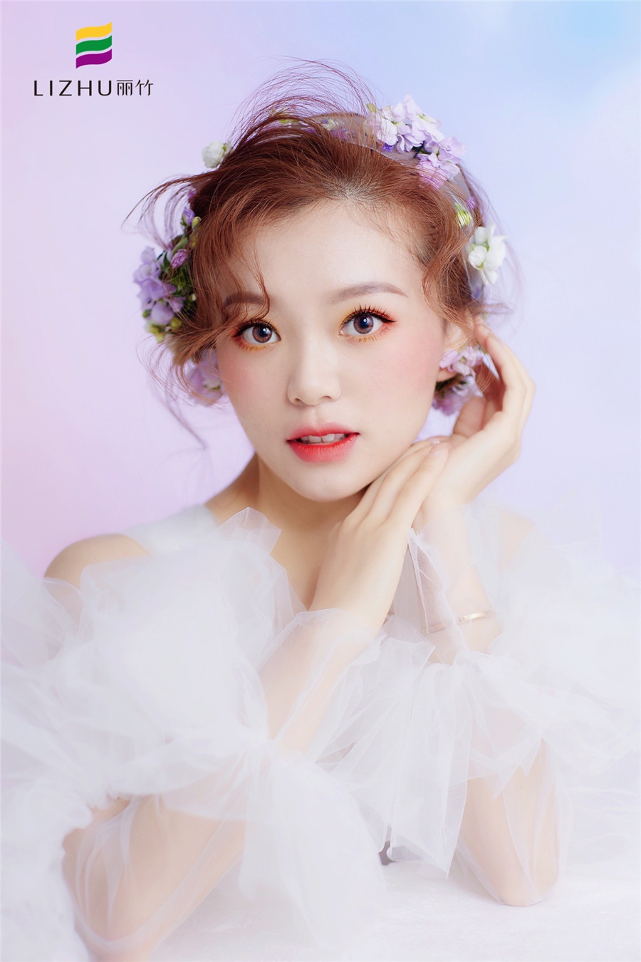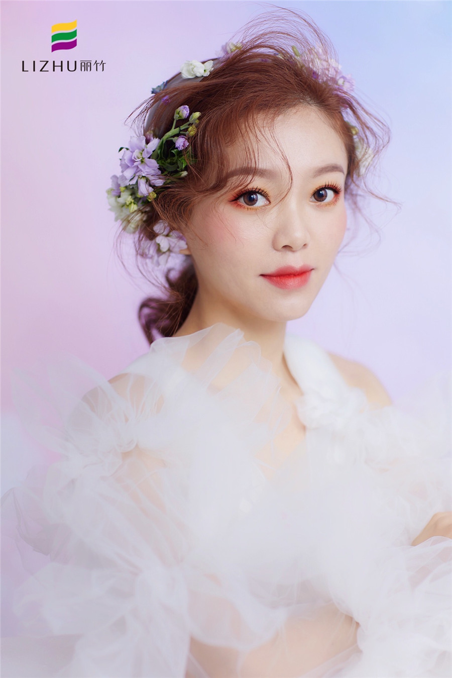 麗竹學校彩妝作品---減齡鮮花造型:仲夏的明媚陽光,都不及你的明艷。鮮花點綴在發(fā)絲中,像森之精靈的魔法,仿佛置身童話之中。