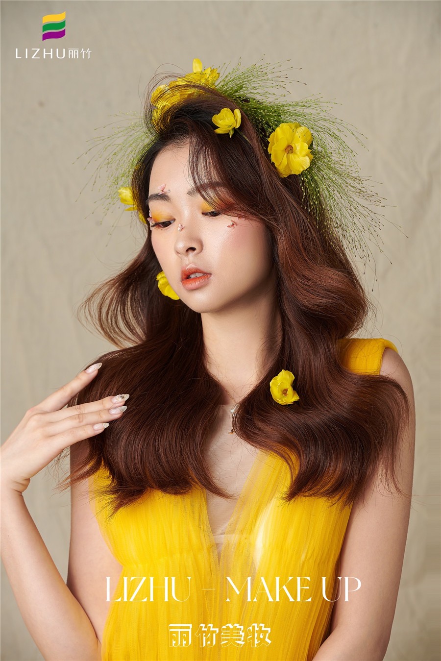 麗竹化妝學校作品:輕氧花漾披發(fā)造型