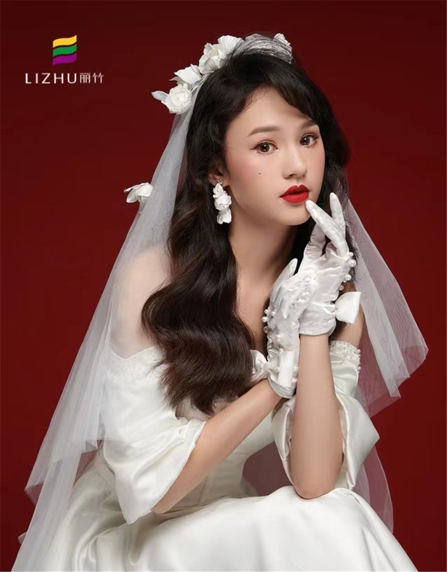 南寧人氣高的化妝學(xué)校作品---韓式披發(fā)新娘造型:很淑女又具優(yōu)雅風(fēng)的長(zhǎng)卷發(fā)發(fā)型,佩戴白色鮮花點(diǎn)綴的純白頭紗,配上清透簡(jiǎn)約的韓式妝容,打造出了新娘優(yōu)雅的浪漫氣息。