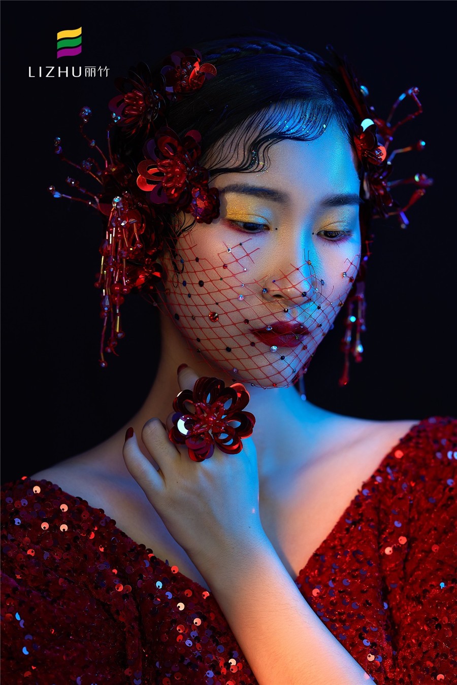 南寧化妝培訓(xùn)(麗竹化妝學(xué)校)作品---輕奢復(fù)古名媛造型:紅色亮片禮服搭配珠光感妝容,打造一種光澤細(xì)膩且高 級(jí)感的氣質(zhì),搭配半截珠片網(wǎng)紗神秘感十足,深邃眼妝透露魅惑的感覺(jué)。