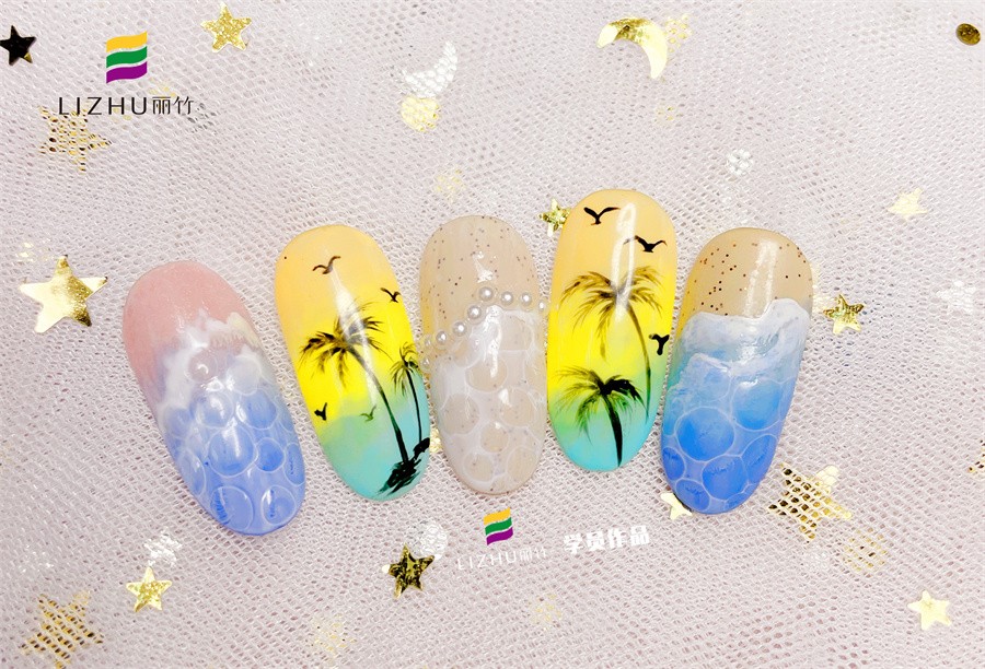 廣西哪里可以美甲進修?請看麗竹美甲學員作品---泡泡海洋風美甲