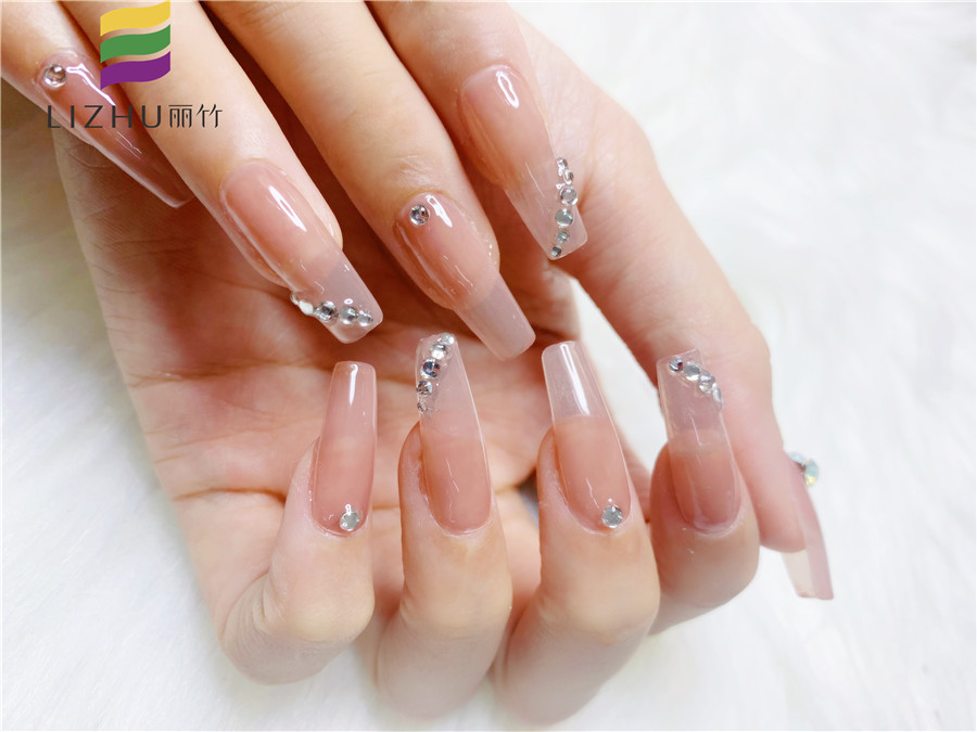 廣西美甲學(xué)校一共有幾家?麗竹美甲學(xué)校用作品證明實(shí)力---透粉貼鉆仙女美甲