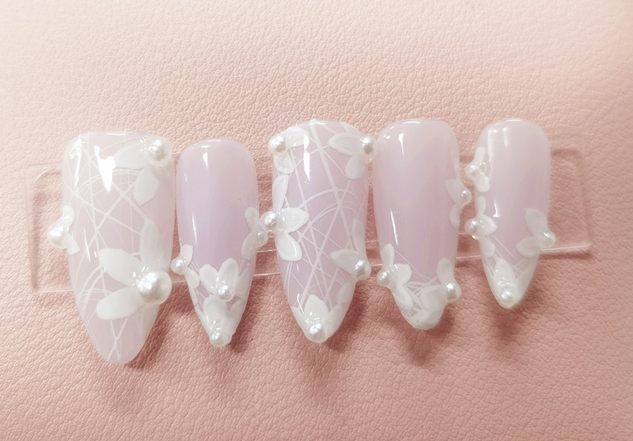 南寧美甲學校一共有幾個?請看麗竹美甲培訓班學員作品---珍珠飾品美甲