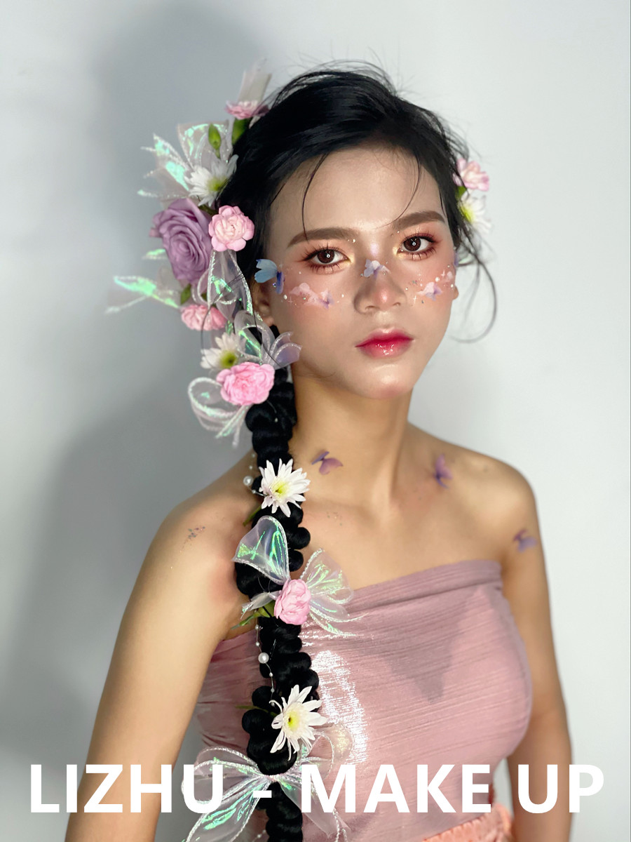 廣西影樓彩妝培訓(xùn)、廣西彩妝造型學(xué)校作品---哈尼族造型。鮮花滿頭,臉部兩頰被鮮花和用彩繪點(diǎn)綴,呈現(xiàn)出若隱若現(xiàn)宛如世外桃園之感。粉嫩果凍唇妝打造,配以甜蜜少女眼妝,在穿著當(dāng)?shù)靥厣b,仙氣靈動(dòng)哈尼族公主造型躍于眼前。要是你想在廣西學(xué)彩妝寫真,想到廣西影樓彩妝培訓(xùn)班學(xué)習(xí),想知道廣西化妝學(xué)校多少錢?不如來參加麗竹周年慶典報(bào)讀...