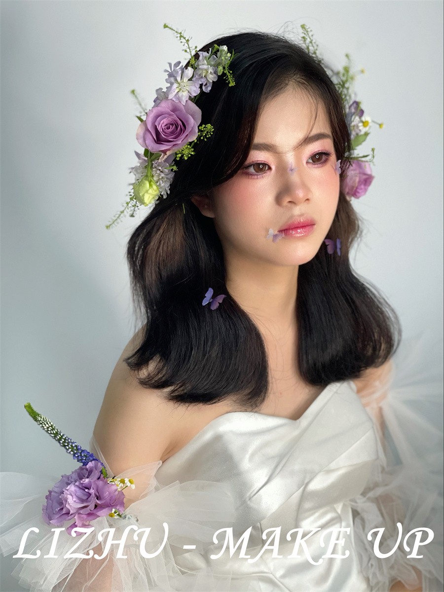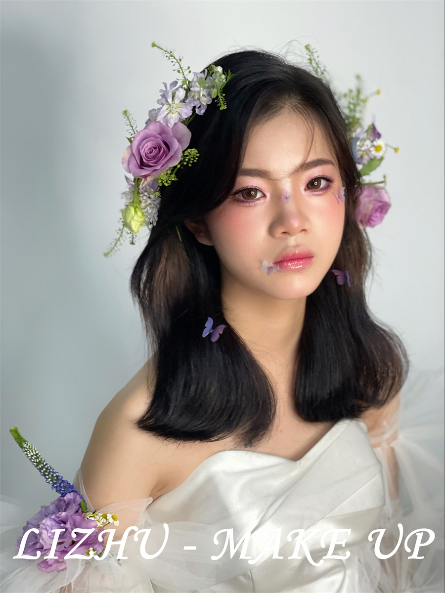 南寧學新娘造型哪里好?請看麗竹化妝學校作品---清新鮮花新娘(三)