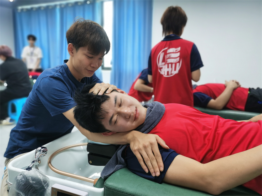 南寧學(xué)洗頭、南寧美發(fā)洗頭培訓(xùn):很多人在沒有來到南寧美發(fā)專業(yè)學(xué)校進(jìn)行學(xué)習(xí)的時候,都覺得洗頭其實是一件很簡單的事情。畢竟,洗頭我們基本每天都在進(jìn)行。但真正的洗頭并不是我們?nèi)粘?吹胶筒僮鞯哪菢印D敲?,美發(fā)洗護(hù)學(xué)什么內(nèi)容?不如就和我們一起走進(jìn)南寧美發(fā)洗護(hù)培訓(xùn)班課堂實訓(xùn),看看學(xué)員們都在進(jìn)行哪些洗護(hù)練習(xí)吧!