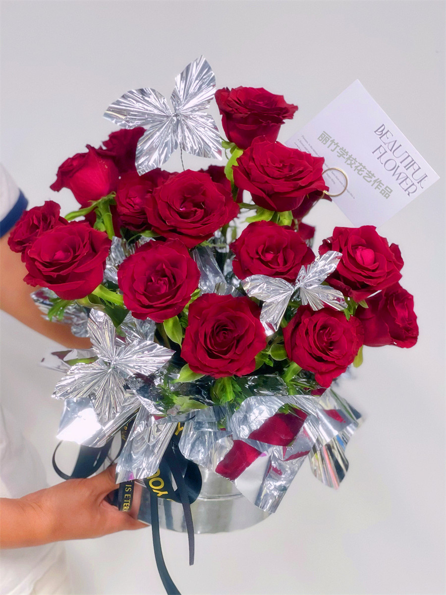 南寧學(xué)習(xí)插花、南寧培訓(xùn)鮮花藝術(shù):南寧花藝零基礎(chǔ)培訓(xùn)班-麗竹花藝學(xué)校的課程已經(jīng)浪漫落幕。學(xué)員們也做出了令自己滿意的花藝作品。下面就和我們一起看看南寧花藝插花職業(yè)學(xué)校學(xué)員們的抱抱桶花束作品吧!如果你對(duì)花藝感興趣,想知道南寧哪里可以學(xué)花藝?麗竹學(xué)校常年開設(shè)花藝培訓(xùn)班,作品時(shí)尚充滿創(chuàng)意,