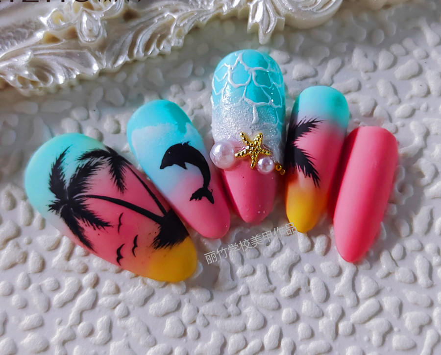 廣西美甲、零基礎(chǔ)美甲培訓(xùn):陽光,沙灘,海豚,椰樹,海鷗,海星……這妥妥的夏日標(biāo)配,你豈能錯(cuò)過?現(xiàn)在去不了海邊的你,有沒有想過把這些海的元素繪制成一副讓人看一眼就心情大好的美甲款式呢?不如先來看看廣西美甲進(jìn)修班同學(xué)們繪制的夏日海灘美甲作品吧!