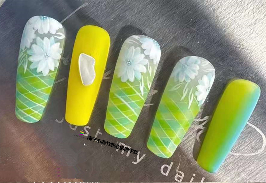 南寧美甲學習--格紋雛菊美甲
