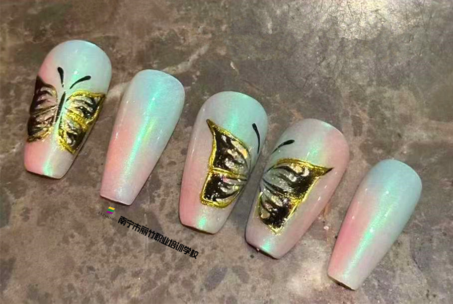南寧美甲造型培訓---手繪立體蝴蝶美甲