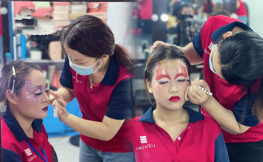 廣西化妝進修班同學(xué)正在進行創(chuàng)意妝容打造