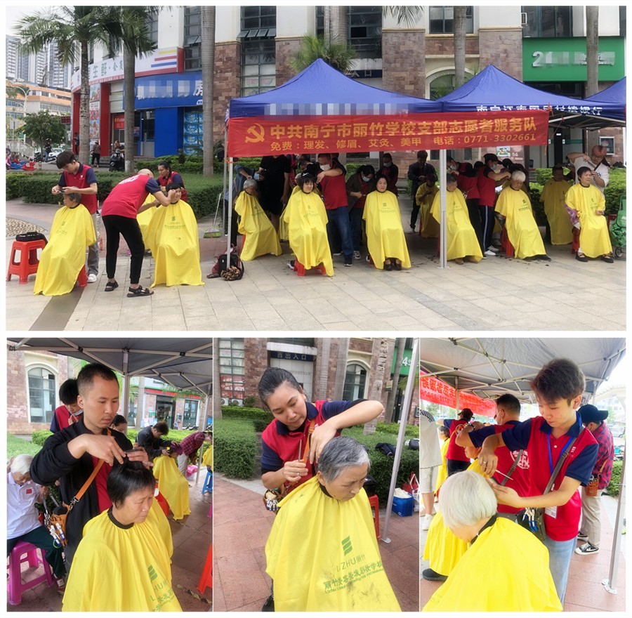 2023年10月23日,正值重陽(yáng)節(jié)當(dāng)天,南寧美發(fā)正規(guī)學(xué)校-麗竹學(xué)校組織美發(fā)班的學(xué)員成立南寧美發(fā)志愿者服務(wù)隊(duì),走進(jìn)奧園社區(qū),憑借專業(yè)特色與實(shí)力,為這里的老人們免費(fèi)提供理發(fā)服務(wù),為他們送去重陽(yáng)節(jié)的祝福。