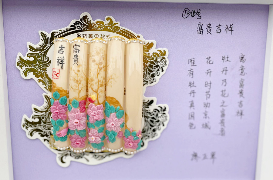 南寧美甲造型學(xué)校學(xué)員雕花作品《花開(kāi)富貴》