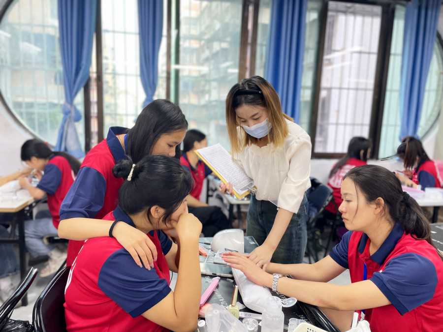 麗竹美甲培訓老師課堂指導同學們練習