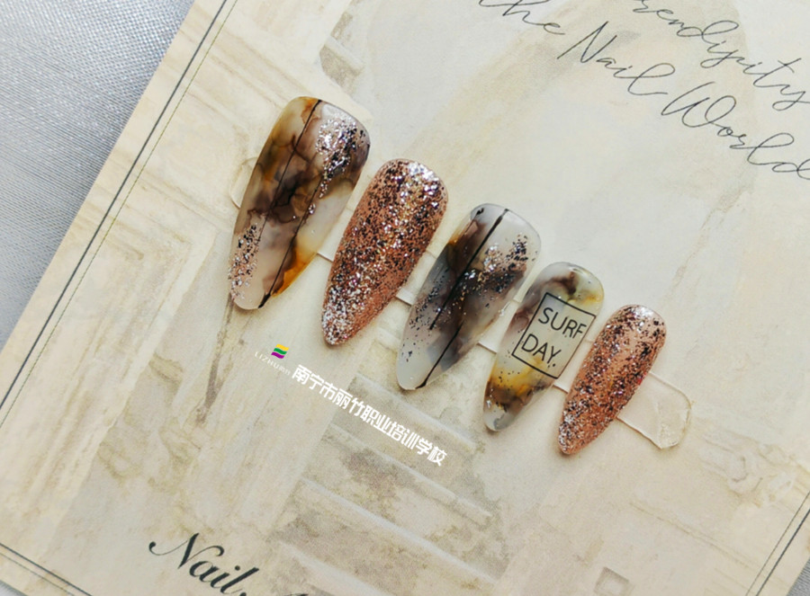 潑墨暈染美甲,廣西南寧美甲職業(yè)技術(shù)學(xué)校作品