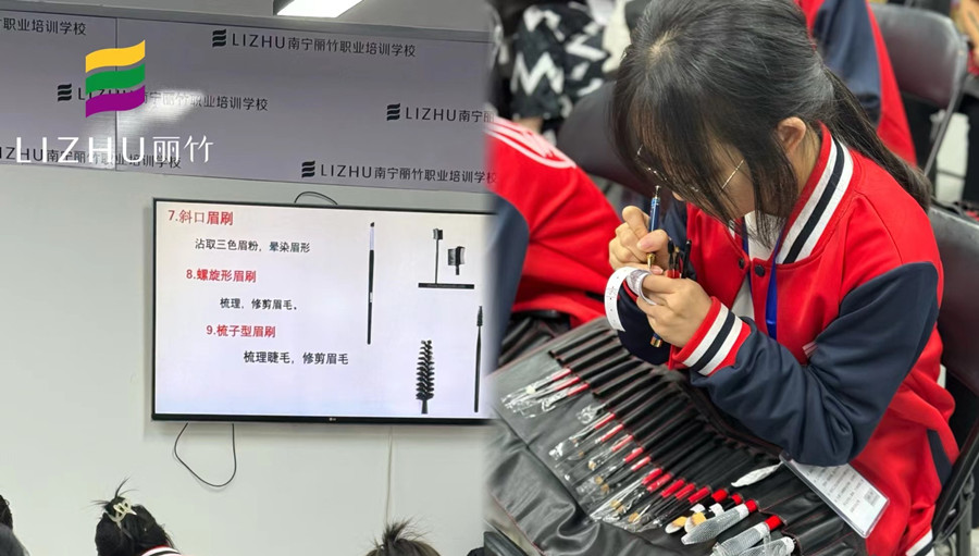 南寧化妝彩妝培訓學校、南寧化妝課堂:如果你也感到好奇,那現(xiàn)在就趕緊走進南寧化妝基礎(chǔ)班的教室里,和同學們一起學化妝的基本步驟,看看大家都是如何從零開始學化妝的吧!如果你只想學習一些基礎(chǔ)的化妝技能滿足日常所需,麗竹學校也推出了化妝短期培訓“夜校/周末班”的《個人形象化妝班》課程,歡迎來電咨詢。