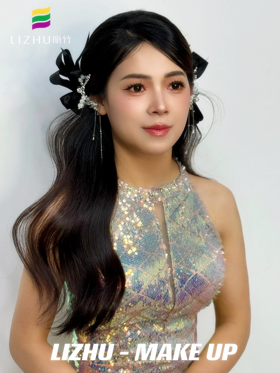 廣西化妝造型培訓(xùn)、廣西化妝彩妝(麗竹化妝造型培訓(xùn))作品:禮服造型:自然清透的甜美妝容,蝴蝶結(jié)夾耳韓式披發(fā),七彩色彩的亮片禮服,猶如人魚公主般夢幻。如果你只想學(xué)習(xí)一些日常用到的化妝手法,建議你可以關(guān)注廣西化妝形象學(xué)校-廣西化妝短期培訓(xùn)班推出的《個人形象化妝班》的課程哦!