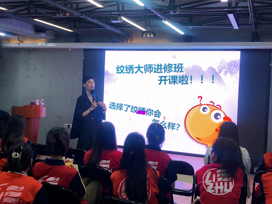 南寧紋繡學校排名、南寧紋繡開班信息:終于等到啦!4月18日上午,南寧紋繡學校《紋繡全 能大師班》于正式開班前,朱斌老師作為此次課程的主講導師,在麗竹學校上了一節(jié)精彩紛呈的宣講課,并針對此次課程可以學到的成果進行了概述。