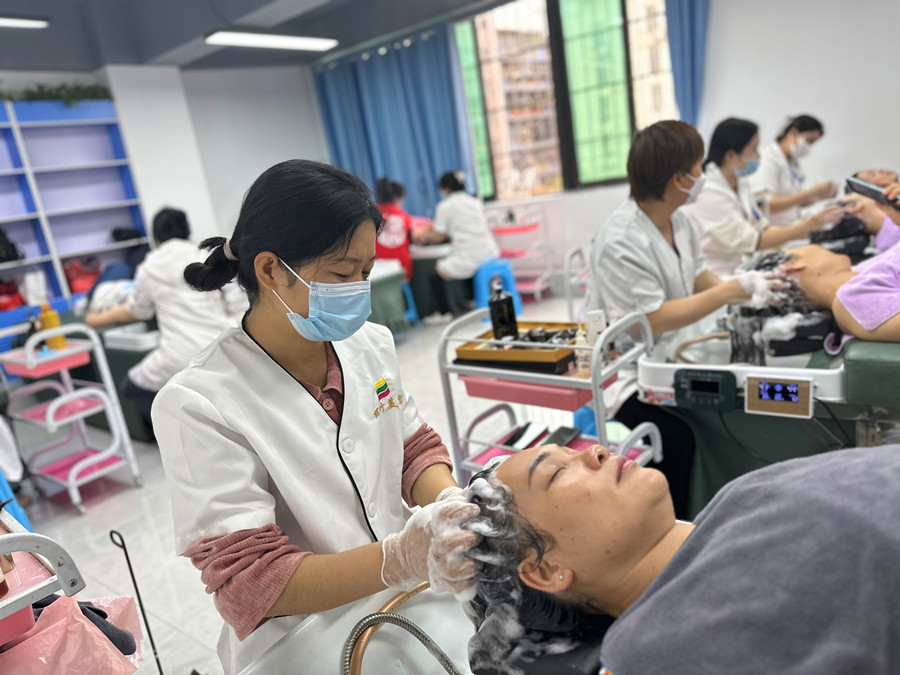 進行健康養(yǎng)發(fā)頭療洗、姜療松筋洗操作
