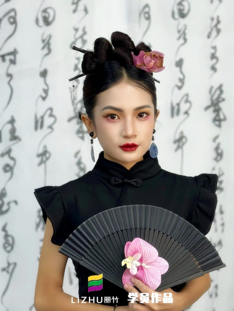廣西化妝培訓推薦、廣西化妝學校排名:都說老祖宗留下的,都是無可復制的美。這話用在化妝技術上同樣也適用。婉約柔美的中式風格,加上現(xiàn)代化的妝容的錦上添花,趕緊和我們一起來看看廣西化妝職業(yè)培訓學校(麗竹化妝學校)同學的課堂化妝作品---新中式造型吧!