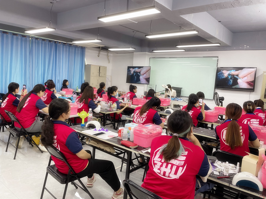 初中畢業(yè)適合讀什么專業(yè)?高中畢業(yè)學(xué)什么技術(shù)好?如果你現(xiàn)在還在為這兩個問題而煩惱,歡迎你來到南寧美甲造型專業(yè)學(xué)校(麗竹美甲造型學(xué)校)里南寧美甲師培訓(xùn)班的教室里,實地參觀,跟著我們的同學(xué)一起學(xué)習(xí)學(xué)習(xí)繪制克萊因藍(lán)貼鉆美甲的課程,一起感受美甲的魅力。
