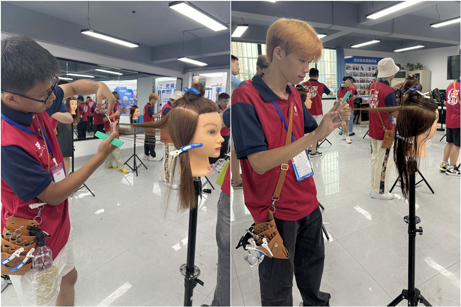 零開(kāi)始學(xué)剪發(fā)、南寧剪發(fā)學(xué)習(xí):在今天南寧美發(fā)剪發(fā)職業(yè)培訓(xùn)學(xué)校(麗竹美發(fā)剪發(fā)職業(yè)培訓(xùn)學(xué)校)的課堂上,老師就通過(guò)假頭模進(jìn)行手法示范,讓南寧美發(fā)剪裁培訓(xùn)班的同學(xué)們了解什么是垂直地面和垂直頭皮修剪。年齡小,不知道考不上高中可以讀什么學(xué)校?也不知道考不上大學(xué)學(xué)什么技術(shù)好?那不如到麗竹學(xué)校來(lái)看看吧!