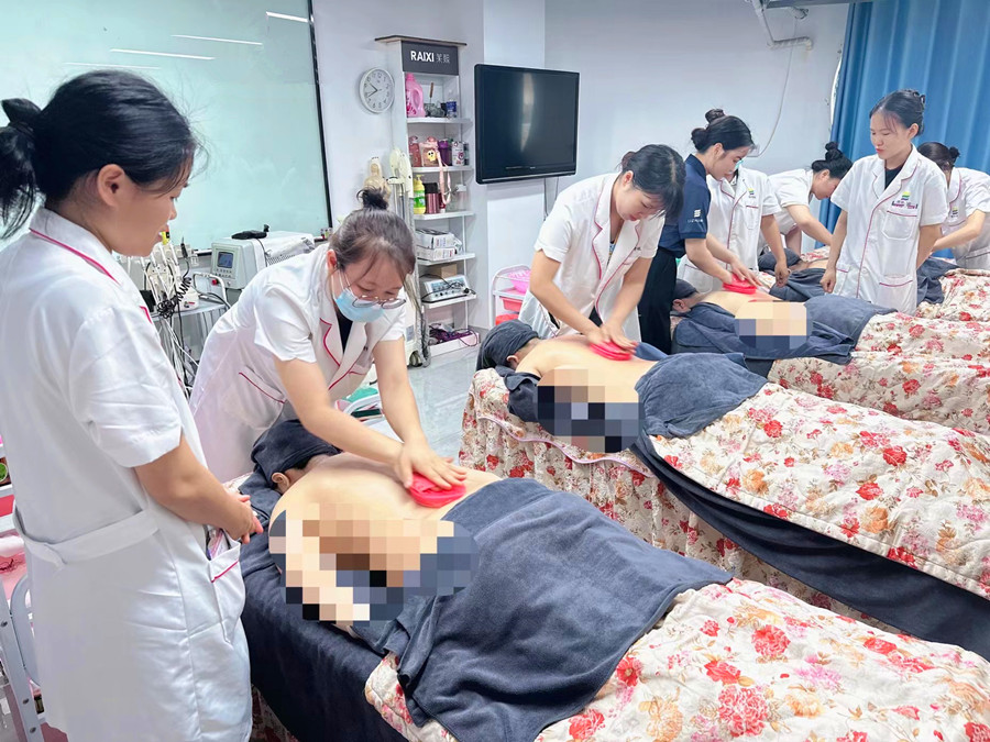 在廣西美容培訓進修的課堂里,同學們就在老師的指導下進行練習,讓我們一起跟著廣西美容美體中醫(yī)學校(麗竹美容美體中醫(yī)學校)的同學們學習下用按摩刷刷背的好處吧!