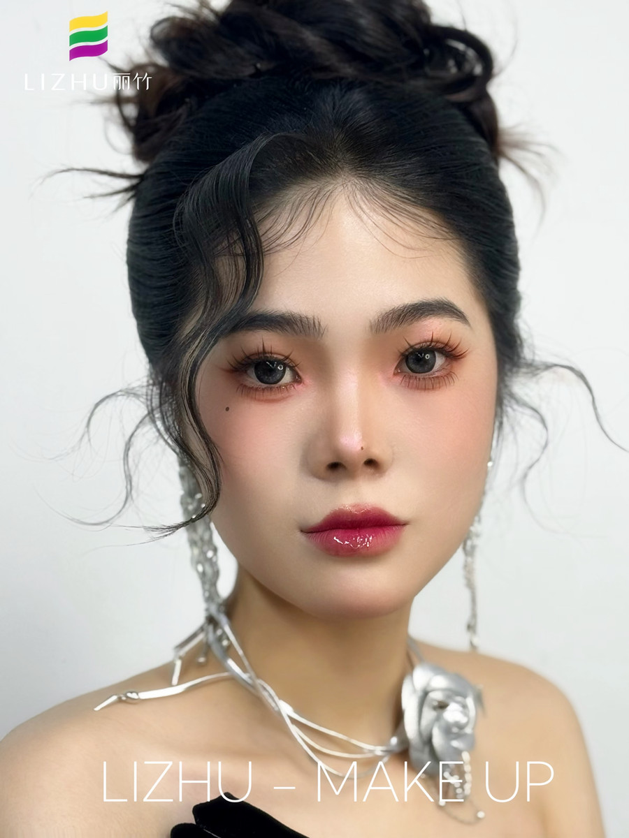 廣西彩妝化妝寫真、廣西化妝高彩、廣西學(xué)彩妝造型影樓(麗竹彩妝化妝學(xué)校)作品---千金禮服造型:極具質(zhì)感的妝容打造,蓬松自然高顱頂盤發(fā),銀色飾品的裝飾點(diǎn)綴,輕松拿捏豪門千金感!