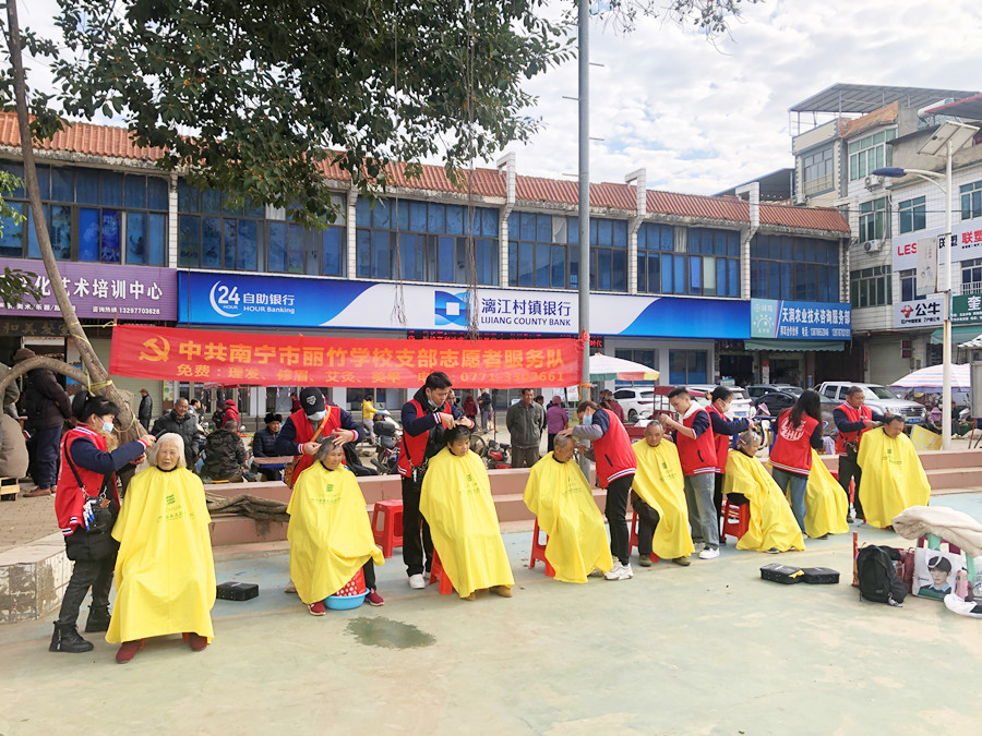 南寧美發(fā)社會實踐報告、南寧美發(fā)教學(xué)外出:霜凍籠罩在上空,呼呼刮來的冷風(fēng),連綿不斷的陰雨讓本就寒冷的氣溫變得更加刺骨難耐。但即便是在這樣的天氣下,南寧美發(fā)職校志愿者服務(wù)隊的同學(xué)們依舊走訪在各大周邊城鎮(zhèn),為群眾們進行免費理發(fā)服務(wù)。下面,就請跟著南寧美發(fā)造型培訓(xùn)(麗竹美發(fā)造型培訓(xùn))的鏡頭一起去看看同學(xué)們都去了哪些地方吧!