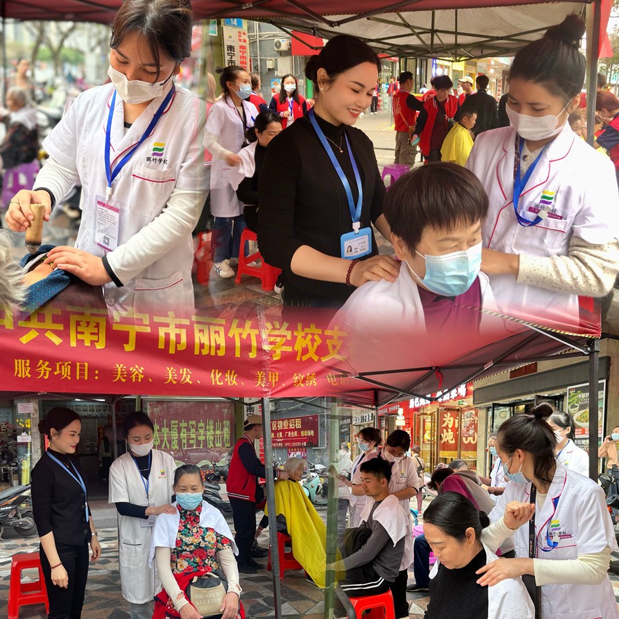 南寧美容公益活動(dòng)、南寧美容培訓(xùn)外出教學(xué):踩著三月的尾巴,南寧美容職業(yè)技師學(xué)校-南寧美容培訓(xùn)班(麗竹美容培訓(xùn)班)的同學(xué)們直接在校門口擺起了臨時(shí)“艾灸館”,免費(fèi)為居民提供艾灸和按 摩等服務(wù)。阿姨體驗(yàn)完后,都紛紛向同學(xué)們豎起了大拇指,感謝大家提供給的服務(wù),同學(xué)們也露出了燦爛的笑容給予答謝。