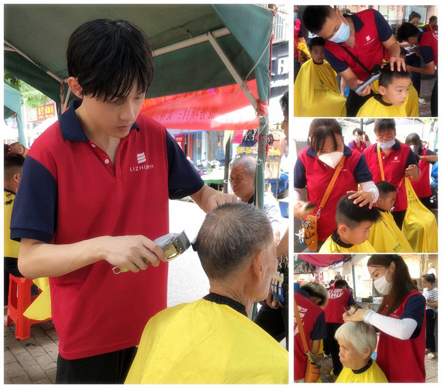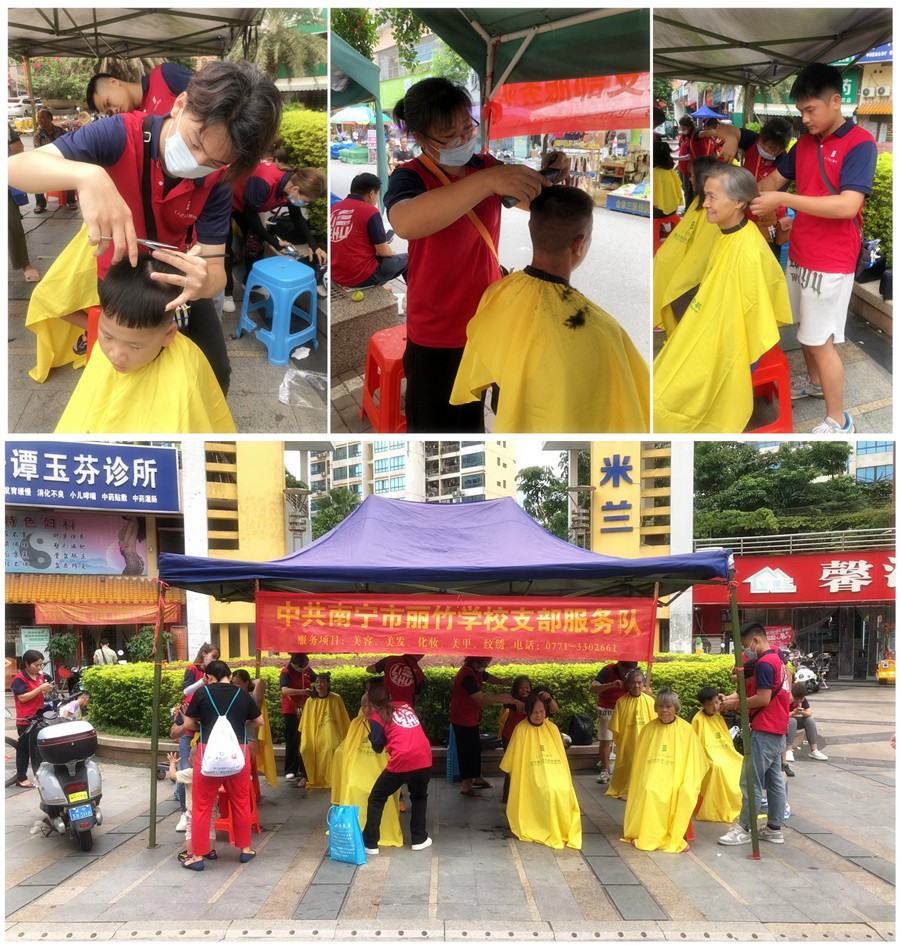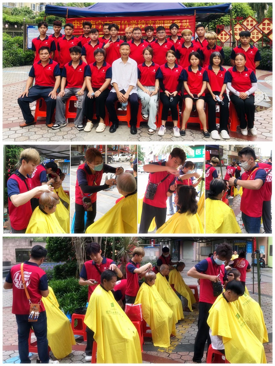 廣西美發(fā)義剪、廣西美發(fā)剪發(fā):隨著氣溫的日益升高,南寧市氣象中心也發(fā)布了高溫預(yù)警。面對(duì)滾滾襲來的熱浪,廣西美發(fā)剪發(fā)職業(yè)學(xué)校(麗竹美發(fā)剪發(fā)職業(yè)學(xué)校)的同學(xué)們?cè)诶蠋煹膸ьI(lǐng)下,來到各大小區(qū)進(jìn)行外出教學(xué)實(shí)踐之余,也為居民送去夏日清涼,免費(fèi)為大家進(jìn)行理發(fā)服務(wù)。