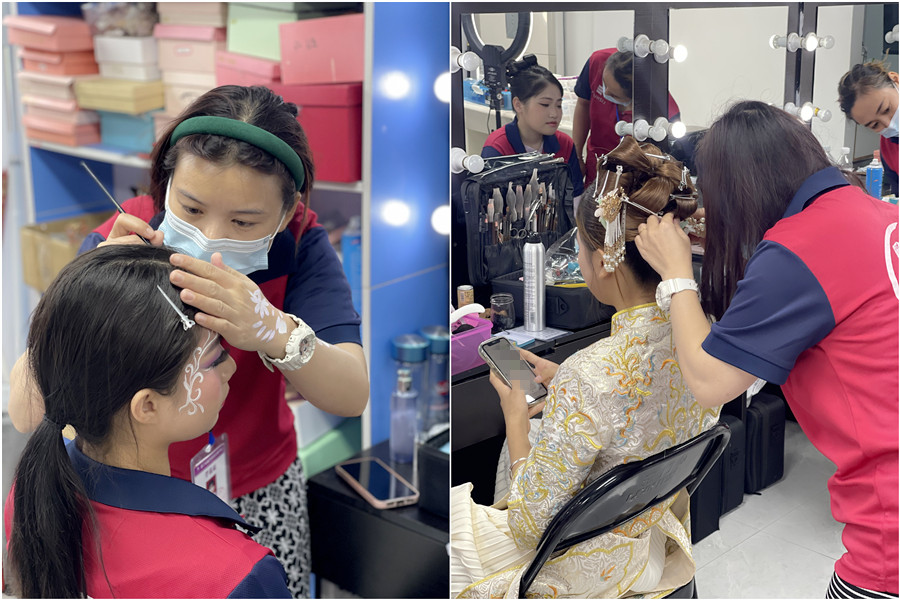 剛剛進(jìn)入到化妝基礎(chǔ)班的時候,從認(rèn)識化妝工具開始,然后到紙上設(shè)計妝容,學(xué)習(xí)基礎(chǔ)化妝技巧,編發(fā),扎發(fā),盤發(fā)等手法。雖然都是一些基礎(chǔ)學(xué)習(xí),但是只要我們在規(guī)定時間完不成的,老師都會在課后加班,指導(dǎo)我們練習(xí),直到我們在規(guī)定時間內(nèi)都能完成為止。
